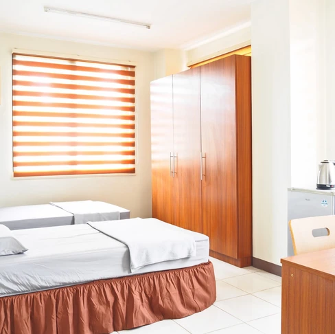 3 รูปแบบ: ห้องเดี่ยว, ห้องคู่, ห้อง 3 คน (ห้องน้ำในตัว) หอพักแยกชายหญิง